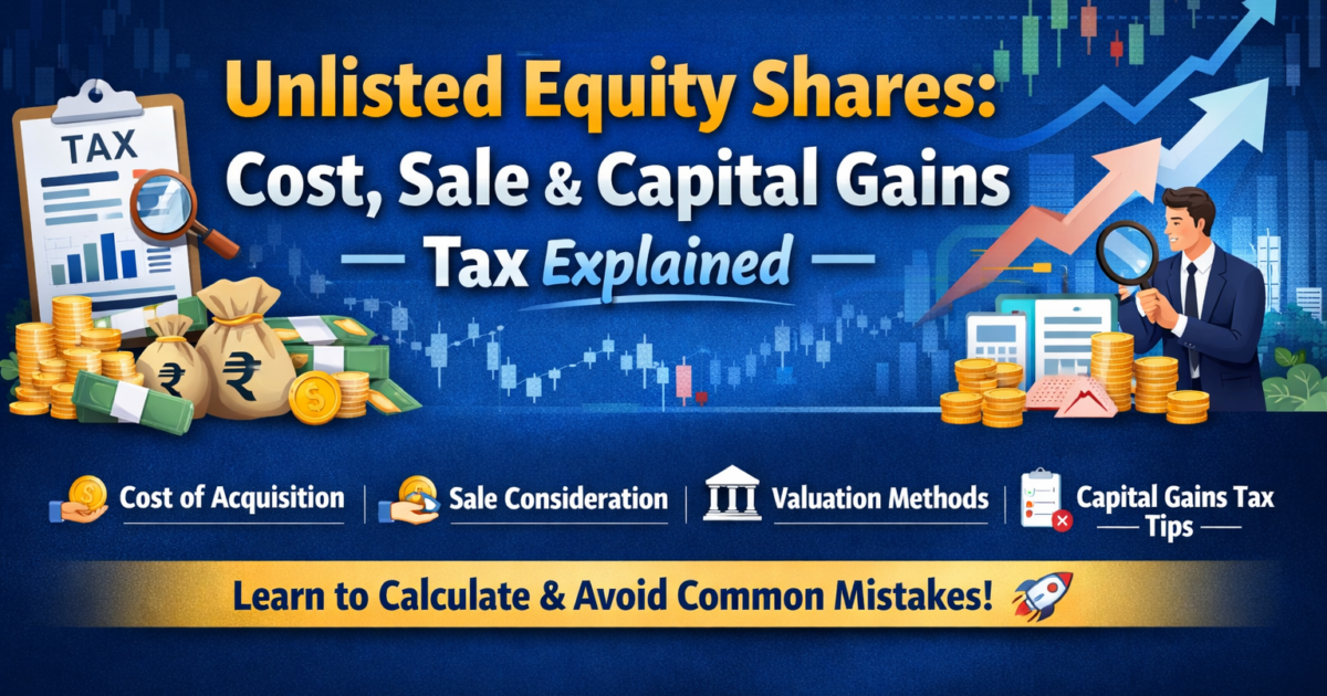 Learn how to calculate unlisted equity share cost of acquisition, sale consideration, capital gains, and valuation methods while avoiding common mistakes. 🧮 How to Calculate Unlisted Equity Share Cost of Acquisition Calculating the value...